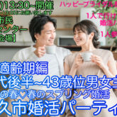【公式サイト☆ベストレート早割先行予約✨3月度佐久市30・40代婚活】3/1(日)13:30~【佐久市会場】幅狭婚活♡上限45歳迄男女《結婚適齢期30代後半〜43才位男女主役》春のスプリング婚活♡佐久市婚活パーティー