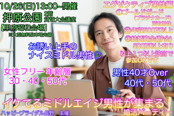 ……イケてるミドル男性の集まる婚活♡甲府昭和会場のご案内です……