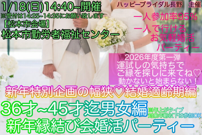 『松本市会場』当社主催 第一弾婚活パーティー❤️幅狭♡良縁シリーズ 45歳まで男女編