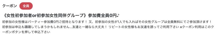 初参加男女割引パーティーや初参加クーポンを採用など